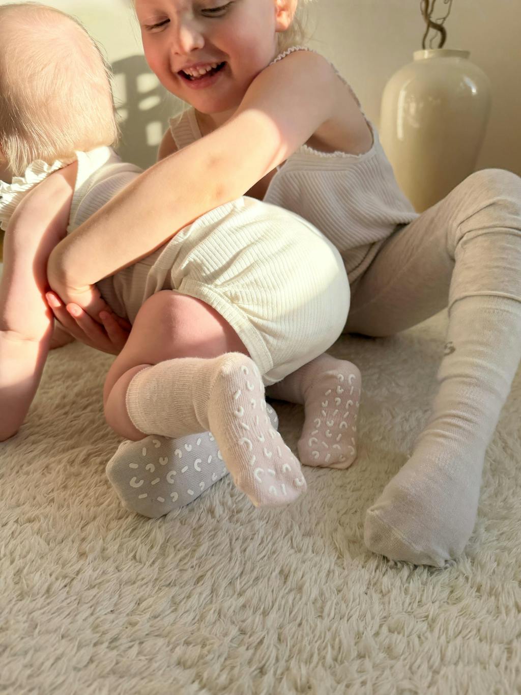 A baby's skin is sensitive and thinner than an adult's, making it more prone to friction, heat, and pressure. We have received reports that some children have experienced skin reactions from direct contact with the silicone in our socks.