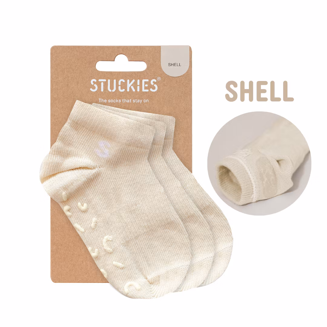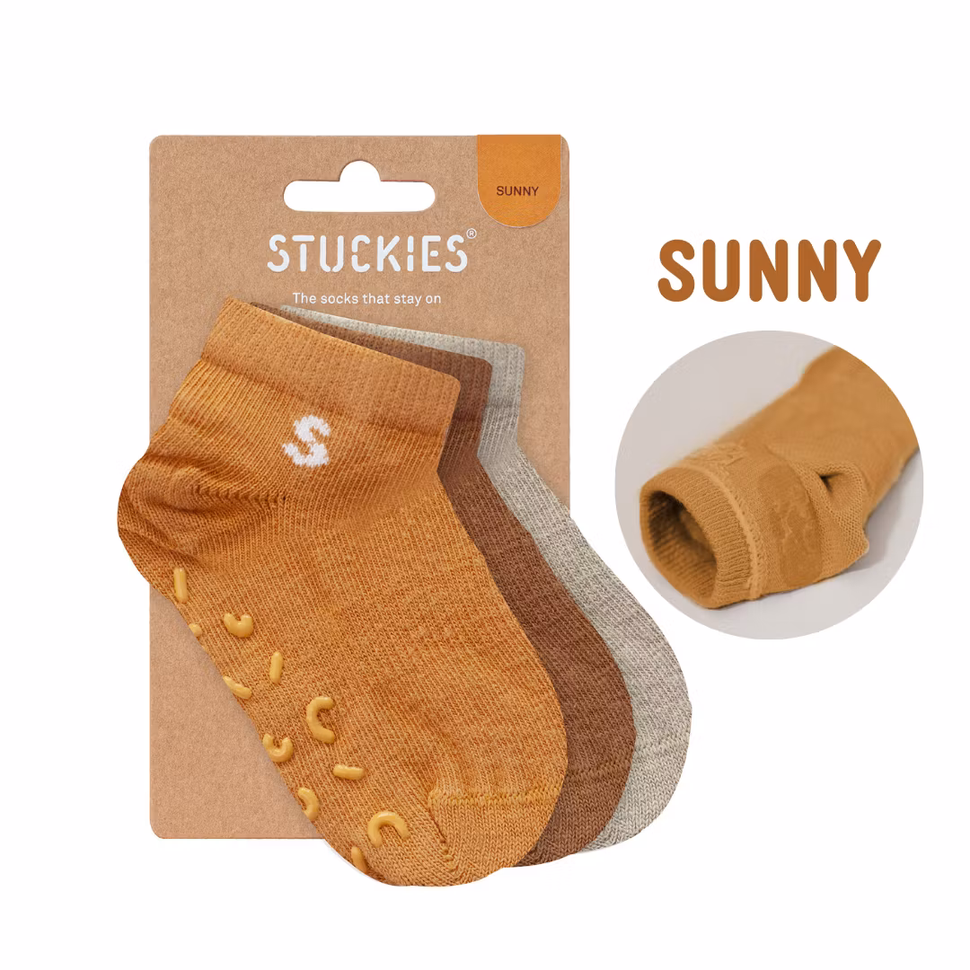 STUCKIES® är barn- och babystrumpor som sitter kvar på fötterna, oavsett om barnet drar i dem, försöker sparka av dem eller kryper. Bläckfiskens tentakler symboliserar strumpornas tekniska lösningar som bidrar till att hålla dem på plats.
