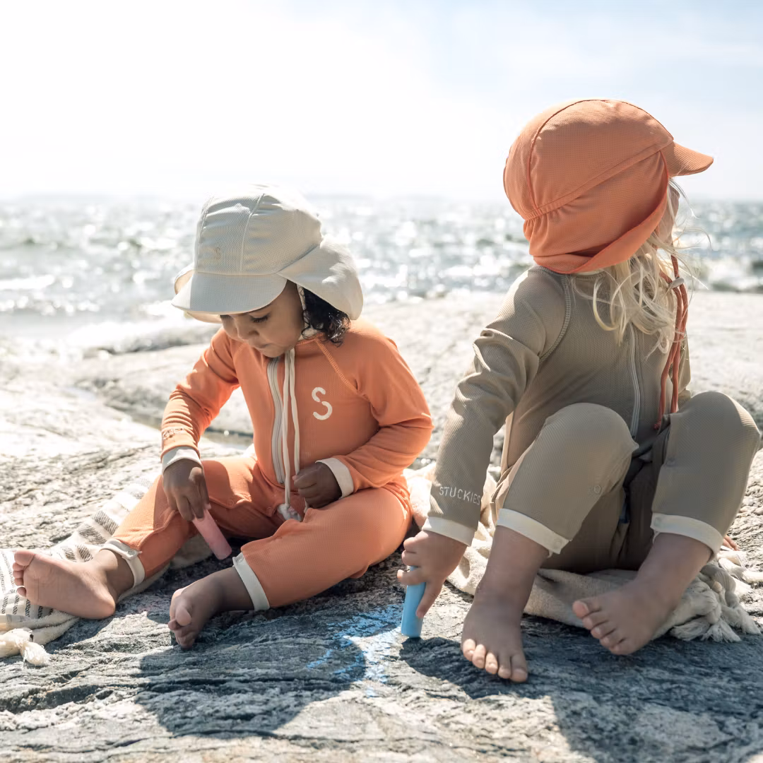 STUCKIES® heltäckande UV-dräkt skyddar barnets känsliga hud mot skadliga UV-strålar med ett effektivt UPF 50+-skydd. Materialet är lätt och håller barnet svalare än traditionellt badklädestyg, vilket minskar risken för överhettning under soliga dagar.