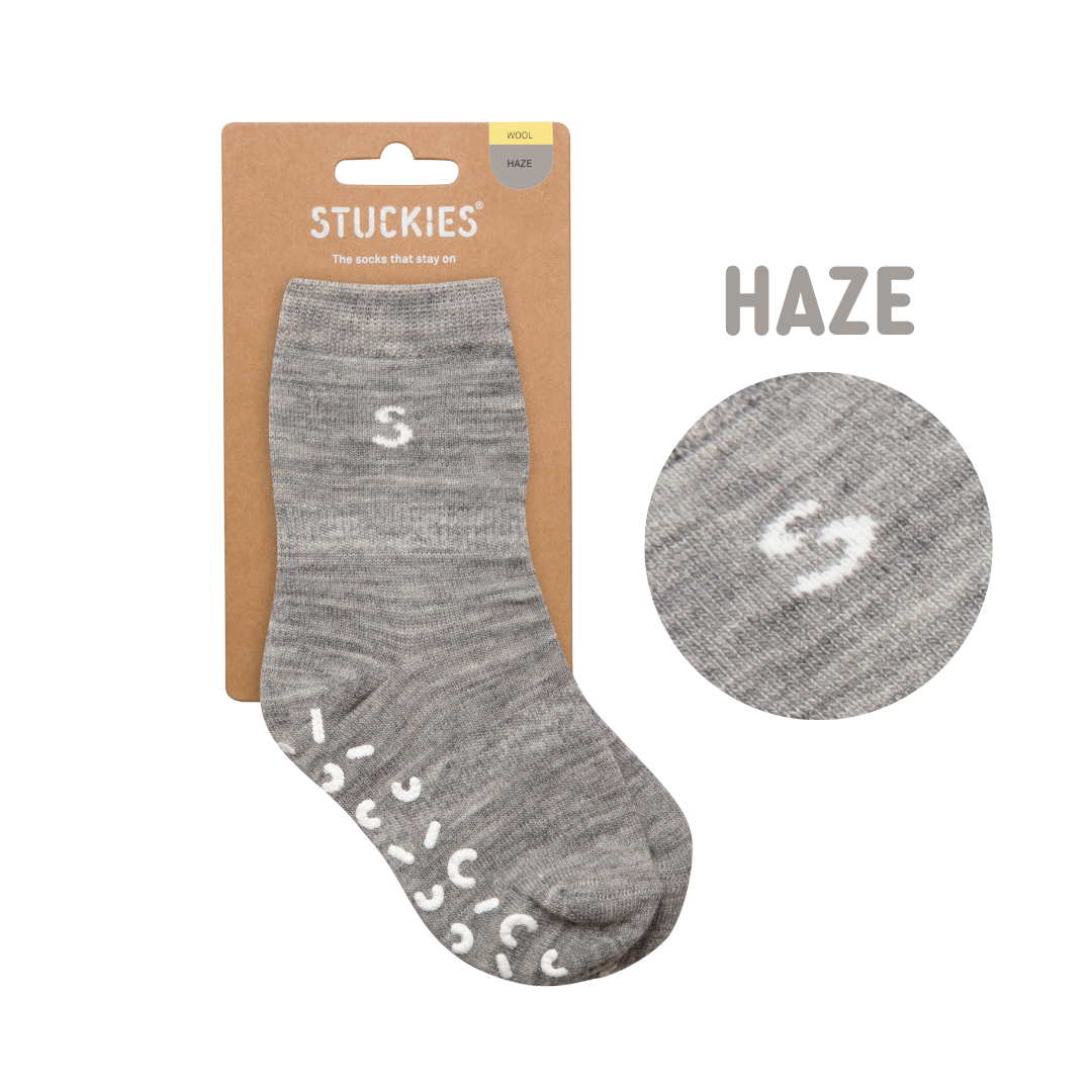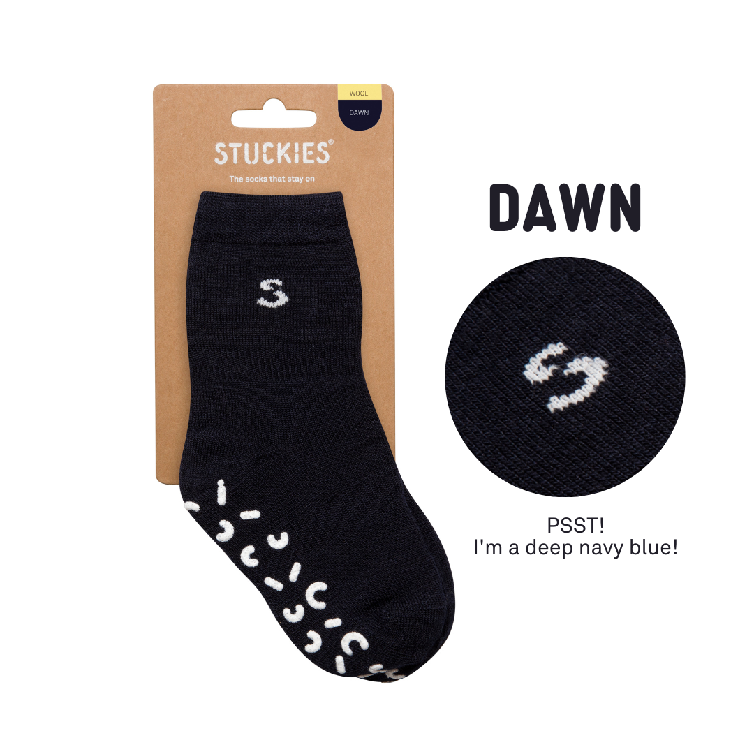 STUCKIES® are baby socks that stay on the feet—whether the child pulls on them, tries to kick them off, or is crawling. The octopus STUCKIES®' tentacles symbolize the technical solutions in the socks that help them stay on. The socks have elastic around the arch of the foot and around the middle of the cuff. They also feature dots of 100% medical-grade silicone on the inside of the cuff. The socks are certified according to STANDARD 100 by OEKO-TEX®. They have a "seamless toe" with a flat seam to avoid irritating small and sensitive toes.